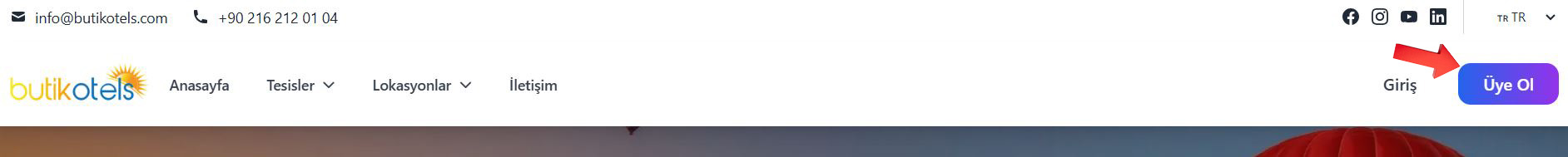 Ana sayfadaki "Üye Ol" butonuna tıklayın.