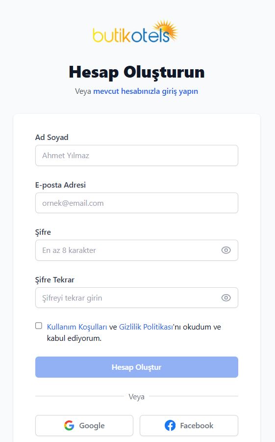 Butikotels'e üye olmak çok kolay!