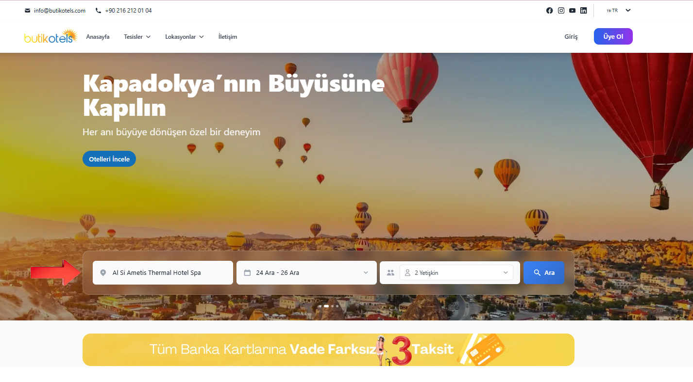 Butikotels üzerinden rezervasyon yapmak çok kolay! Aşağıdaki adımları takip ederek hayalinizdeki tatili hemen planlayabilirsiniz.
